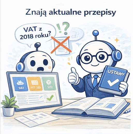 Księgoboty to wyspecjalizowane narzędzia AI stworzone z myślą o polskiej rzeczywistości podatkowej i księgowej. Wystarczy przeczytać artykuł Księgoboty vs ChatGPT – dlaczego specjalizacja ma znaczenie, aby zrozumieć, że nie są to generyczne chatboty, które na pytanie o VAT odpowiedzą przepisem z 2018 roku. To asystenci, którzy znają ustawy, interpretacje podatkowe, przepisy ZUS i potrafią odróżnić stan prawny z roku 2024 od 2026.