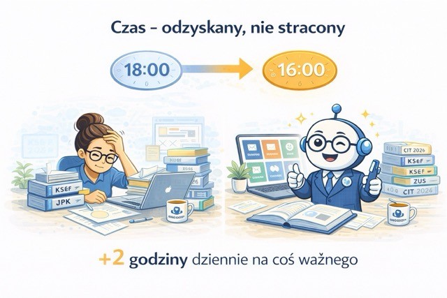 Klienci widzą gotowe deklaracje i terminowo wysłane pliki JPK. Nie widzą tego, co dzieje się za kulisami: godzin spędzonych na szukaniu aktualnych przepisów, stresu związanego z kolejnymi nowelizacjami i rosnącej liczby pytań, na które trzeba odpowiedzieć natychmiast - najlepiej o 21:00 w niedzielę.