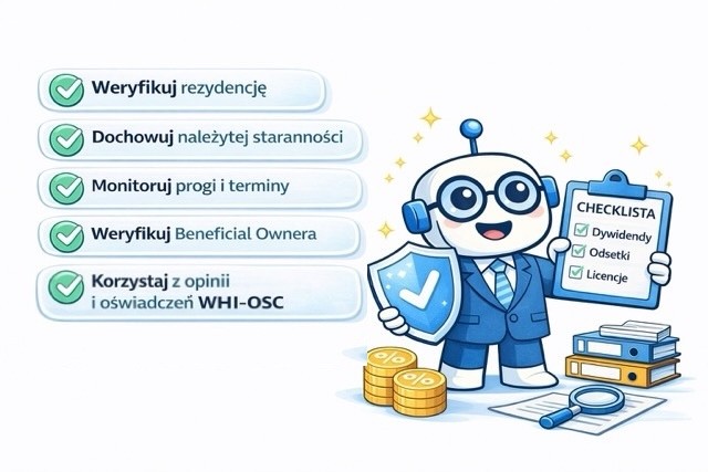 ✔ Weryfikuj rezydencję podatkową - zawsze zbieraj certyfikaty rezydencji przed wypłatą