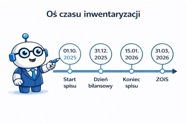Dzień bilansowy (dzień, na który ustala się stan) - dla roku 2025 jest to 31 grudnia 2025 r. To ten dzień jest „punktem odniesienia” dla inwentaryzacji rocznej i decyduje o tym, w którym roku ujmujemy różnice.